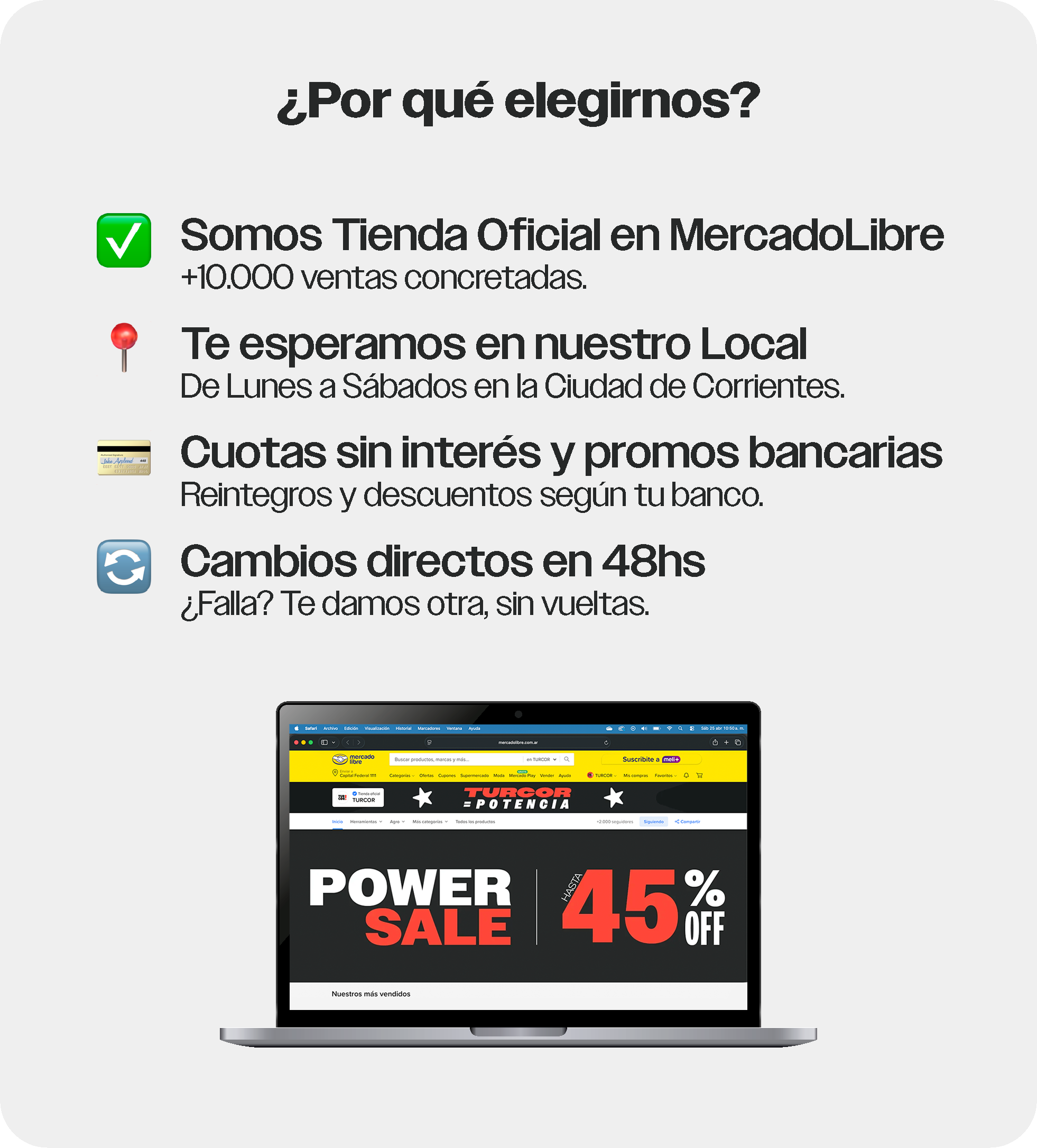 Representantes Autorizados de ¡Visitanos! ¡Seguinos en Instagram! turcor.com.ar Vamos junto a vos. 🌐 +10.000 Ventas ML 🤝 ML PLATINUM 📍 Corrientes, Argentina 🇦🇷 Envíos a todo el país Una propuesta JUSTA 🙂↕️ 👇 ¿Quién pone los primero Las entregas más rápidas de la Ciudad… El día de hoy dirigimos una CAPACITACIÓN en nuestr 🔥 Summer Sale en TURCOR 🔥 Regalate una hidro… ¡Y n Algo nuevo se acerca 👀… ¡Quiero el taladro más grande que tenga! No… no ta ¡Casi ninguna caña salió lastimada durante la grab ¡Anda dale, ahí te está esperando! 🙂↕️🕰 Cargar más Seguir en Instagram Comprá en confianza desde nuestra Tienda Oficial en MercadoLibre Tienda Oficial TURCOR